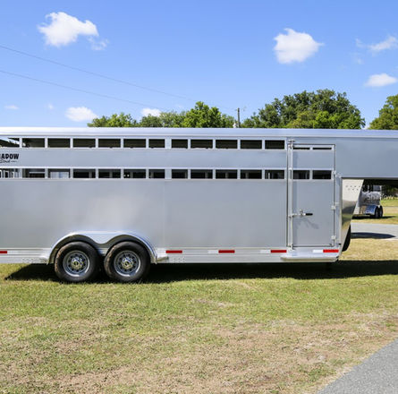Shadow Stock Trailers are built tough for everyday use on the ranch. Shadow offers 6’ 4” wide; 6’ 9” wide and also 8’ wide. The spring axles give your stock a much better ride, getting your livestock and horses to their destination with less stress and fatigue.