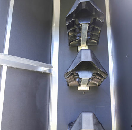 Swinging Tack Wall- Increases trailer versatility allowing more room for hauling other items.