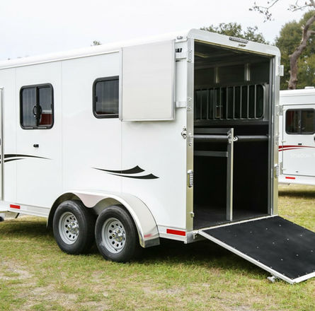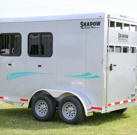 Shadow Trailer LLC identified the need for a quality horse trailer that could be easily pulled with a lightweight truck or SUV. The Stablemate family comes with all aluminum 1, 2, 3, and 4-horse bumper pull models. Today, the popular Stablemates are available as slant loads, straight loads, and stock trailers. Available in Goosenecks as well. Stablemate models are very affordable all aluminum trailers that maintain the quality and safety Shadow Trailers are known for. The Stablemates are very versatile with the dressing room wall on hinges, thus creating a versatile cargo trailer perfect for countless tasks.